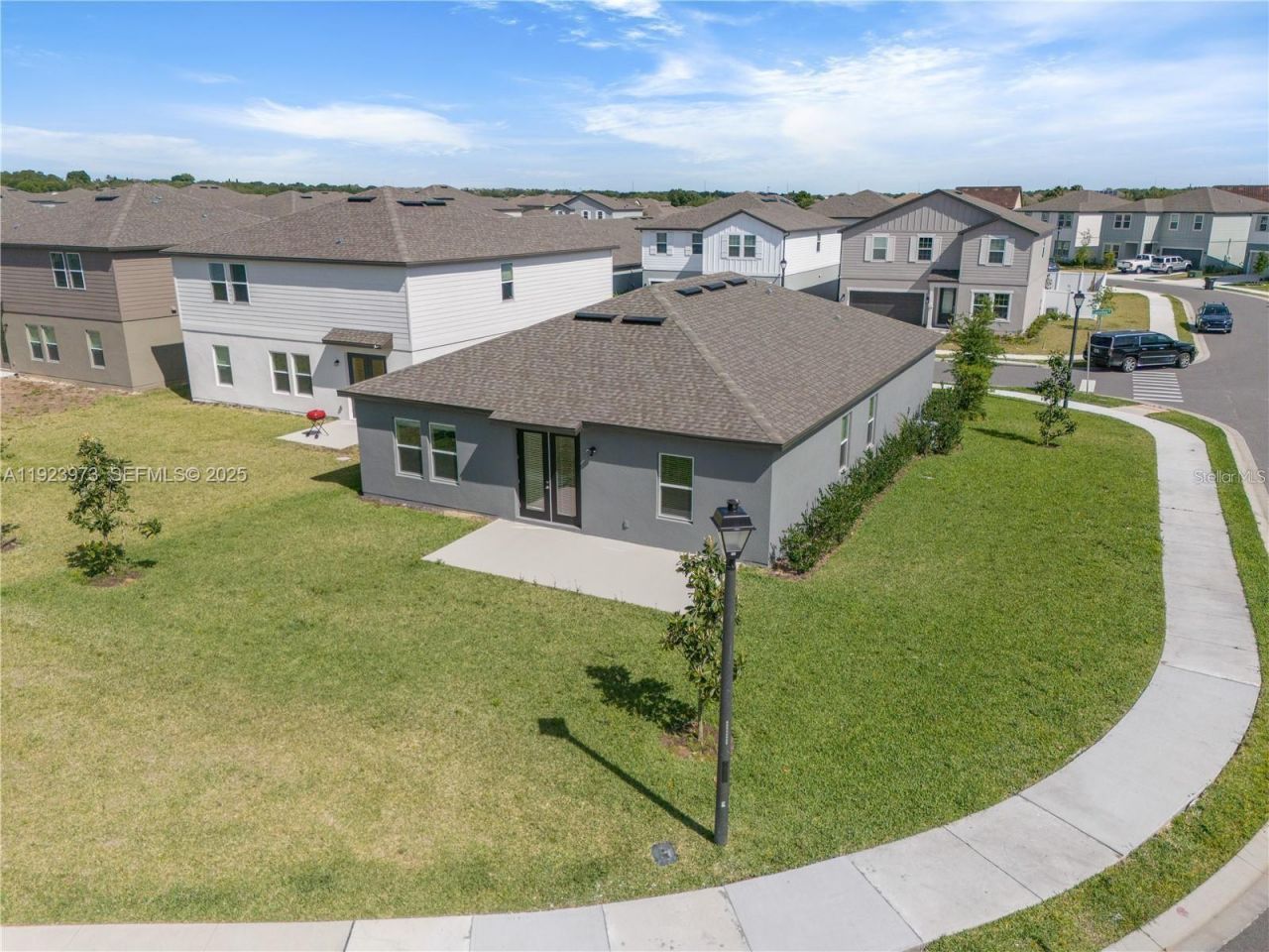 One story single family home on an oversized corner lot in one of Davenports most desirable neighborhoods and resort-style living in Champions Gate. The modern interior features elegant ceramic plan tile flooring throughout, creating a seamless and stylish look. The gourmet kitchen boasts 42-inch cabinets providing ample storage, along with luxurious quartz countertops, stainless steel appliances-perfect for entertaining and daily living. 2-car garage. The property offers privacy and additional outdoor space, with a generously sized lot ideal for relaxation and activities. Conveniently located with easy access to the Enclaves Amenity Center, offering shopping, dining, major highways, and just minutes from world-class theme parks and attractions. No rental restrictions. Short-term rentals are permitted with no limitation on the length or number of rental months.